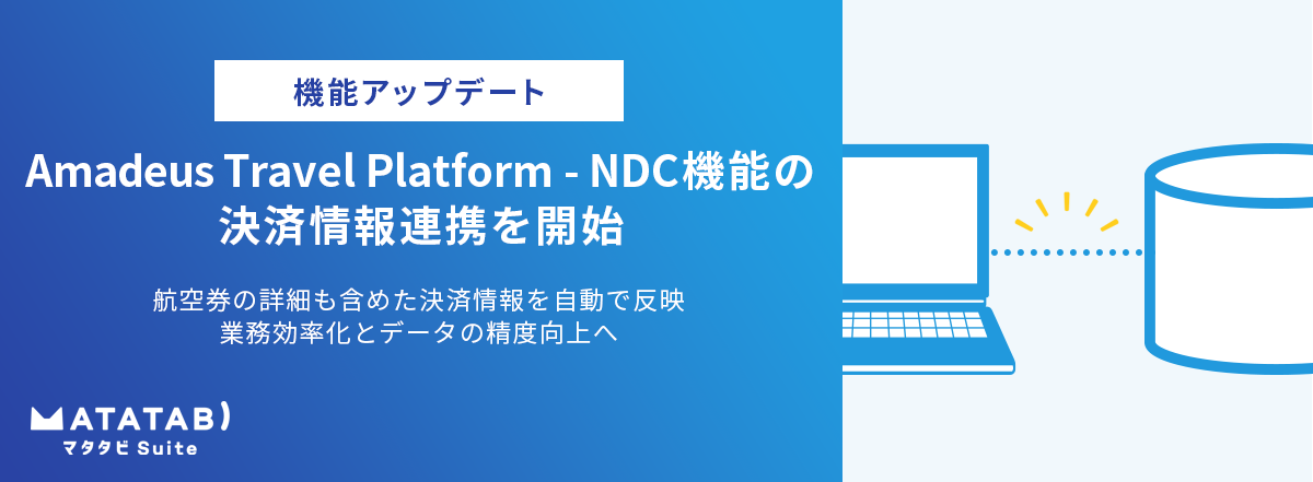 2025年3月26日(水)、株式会社アジェンダ(本社:北海道札幌市、代表取締役社長:伊藤 智裕)は、旅行会社向けクラウドサービス「マタタビ Suite」において、Amadeus Travel Platform – NDC機能を介して取得したNDC規格の予約情報から、決済情報の取込みと自動入力に対応したことをお知らせします。