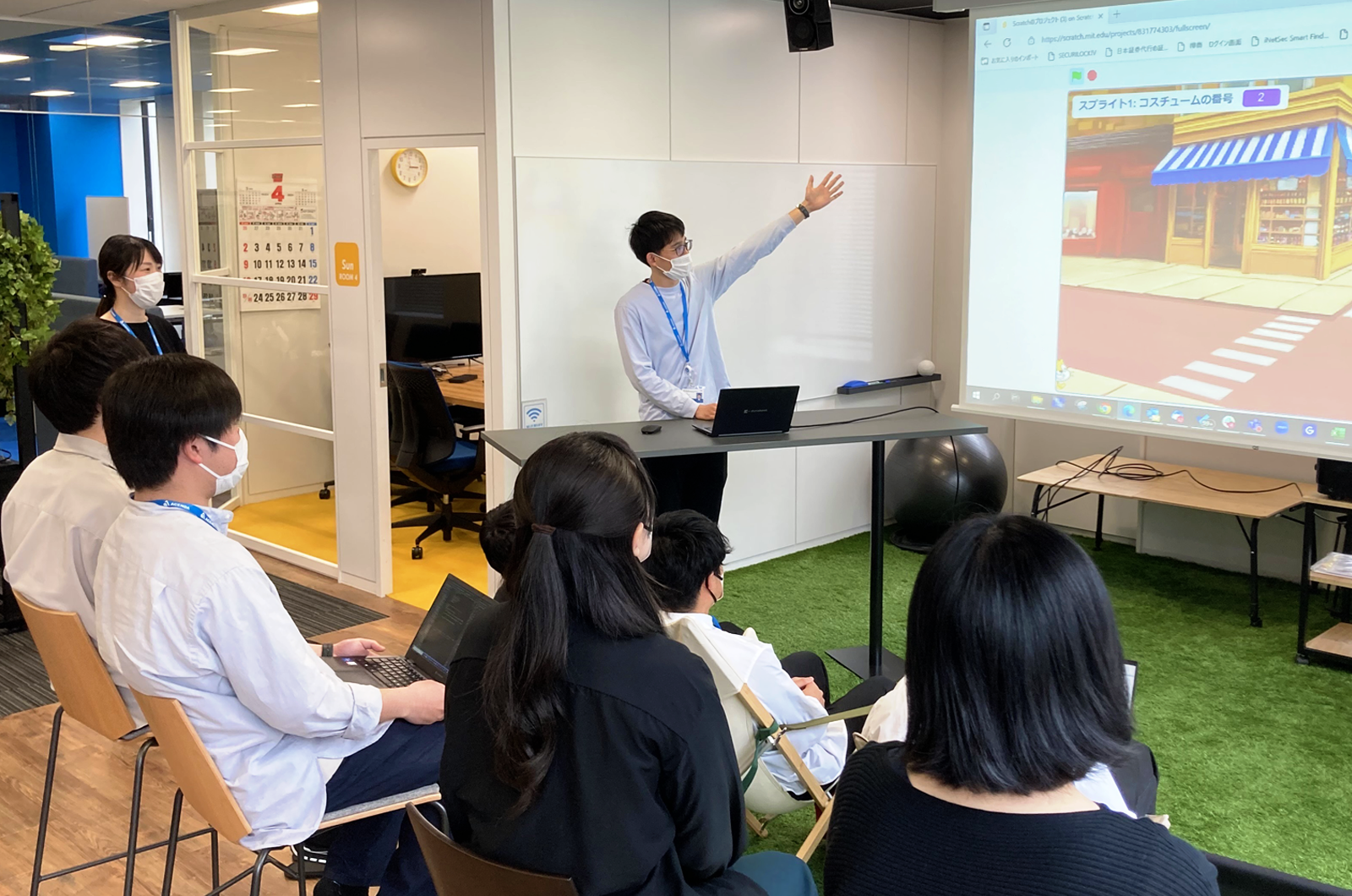 インターンシップの最終日には、先輩社員の前で自分が作った作品を発表します。どんなアイディアなのか、どんな点を工夫したのか、見どころはどこか…など、自分の成果をお教えください。発表の後は先輩社員から皆さんの作品に対する感想やフィードバックを直にお伝えします。