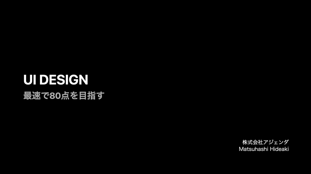 タイトルは「UIデザイン、最速で80点を目指す」。